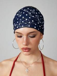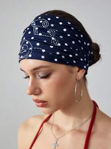 Grunge Punk 1pc Cute White Polka Dot Headband, Y2K Style Musical Note Rhinestone Black Hair Band, Fashionable Versatile Hair Accessory For Daily Wear
