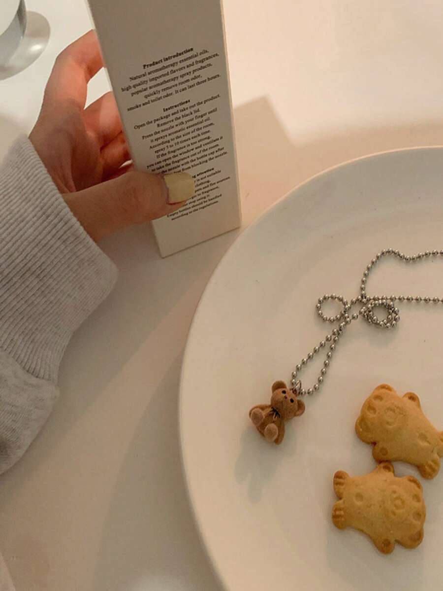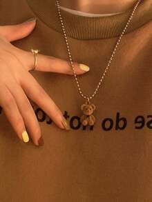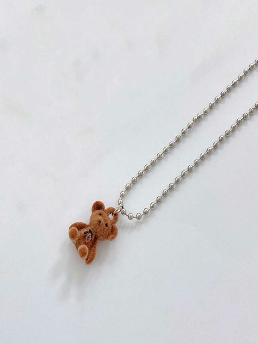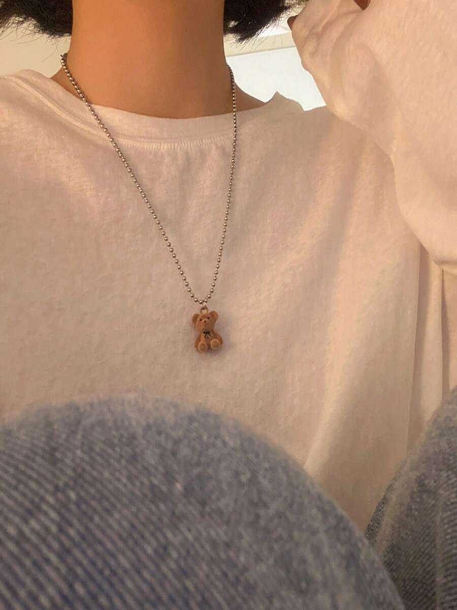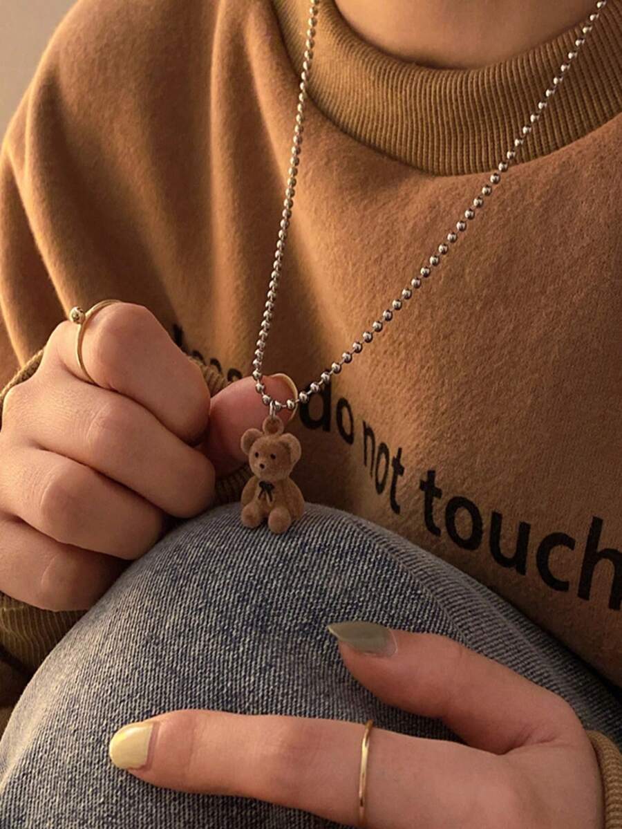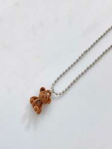 1pc Cute Zinc Alloy Bear Charm Necklace For Women For Gift