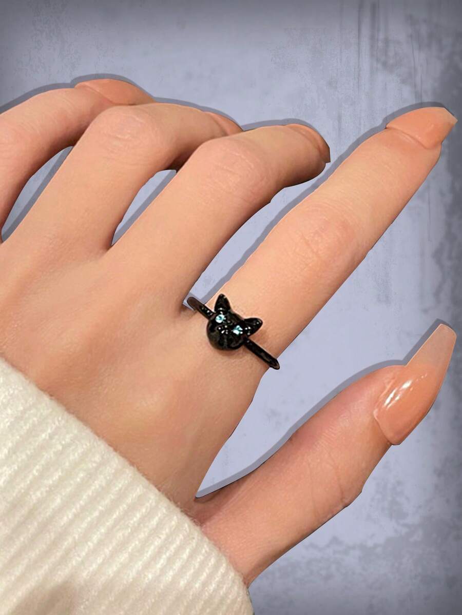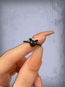 1pc Cute Zinc Alloy Cat Decor Ring For Women For Daily Decoration