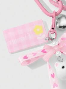 Kawaii 1pc Delicate, Chic & Versatile Pink Woven Ribbon CCB Heart Tree Resin Bow, Flocked Owl, LOVE Acrylic Tag With Braided Cord, Suitable As Keychain, Bag Charm, Phone Decor, Gift For Women & Girls