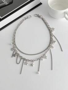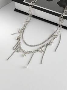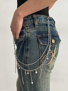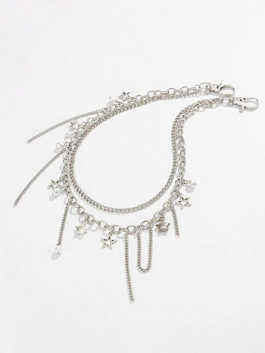 Goth 1pc Fashion Casual Simple Star Tassel Waist Chain, Multi-Layer Metal Alloy Chain Body Chain, Women Accessory, For Pants Decoration, Suitable For Daily, Music Festivals, Parties