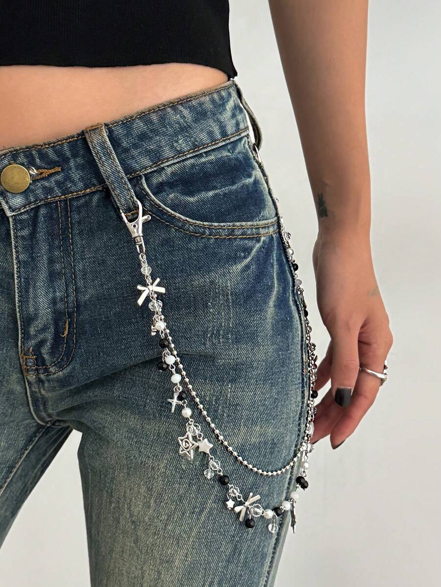 Fairycore 1pc Fashion Casual Simple Star Tassel Waist Chain, Multi-Layer Metal Alloy Chain Body Chain, Women Accessory, For Pants Decoration, Suitable For Daily, Music Festivals, Parties