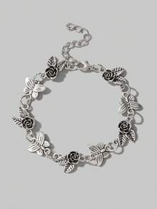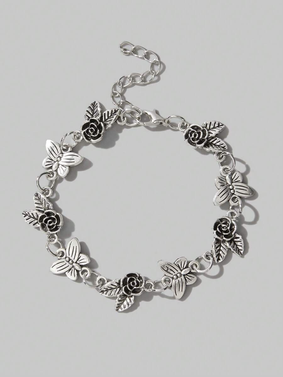 Fairycore 1pc Fashion Iron Alloy Butterfly & Floral Decor Bracelet For Women For Daily Decoration