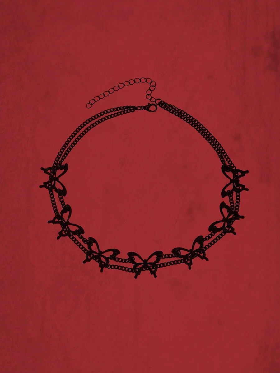 Goth 1pc Fashion Iron Alloy Butterfly Decor Layered Necklace For Women For Daily Decoration