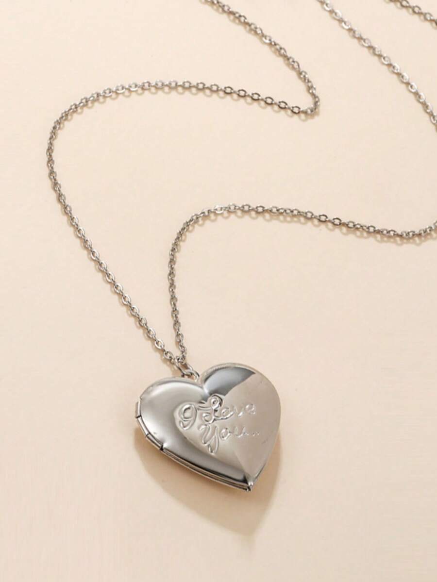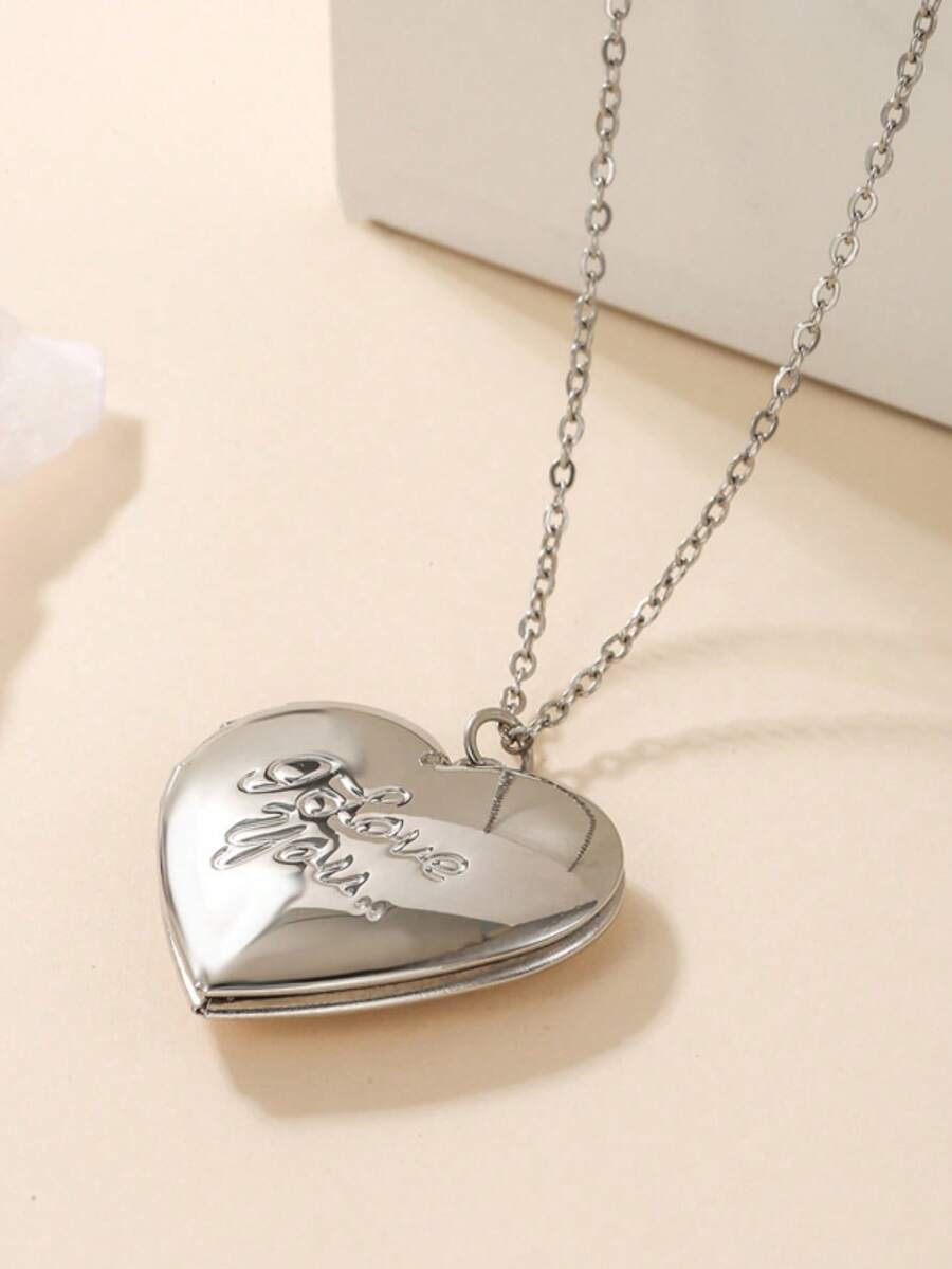 1pc Fashion Stainless Steel Letter Heart Charm Necklace For Women For Daily Decoration