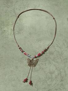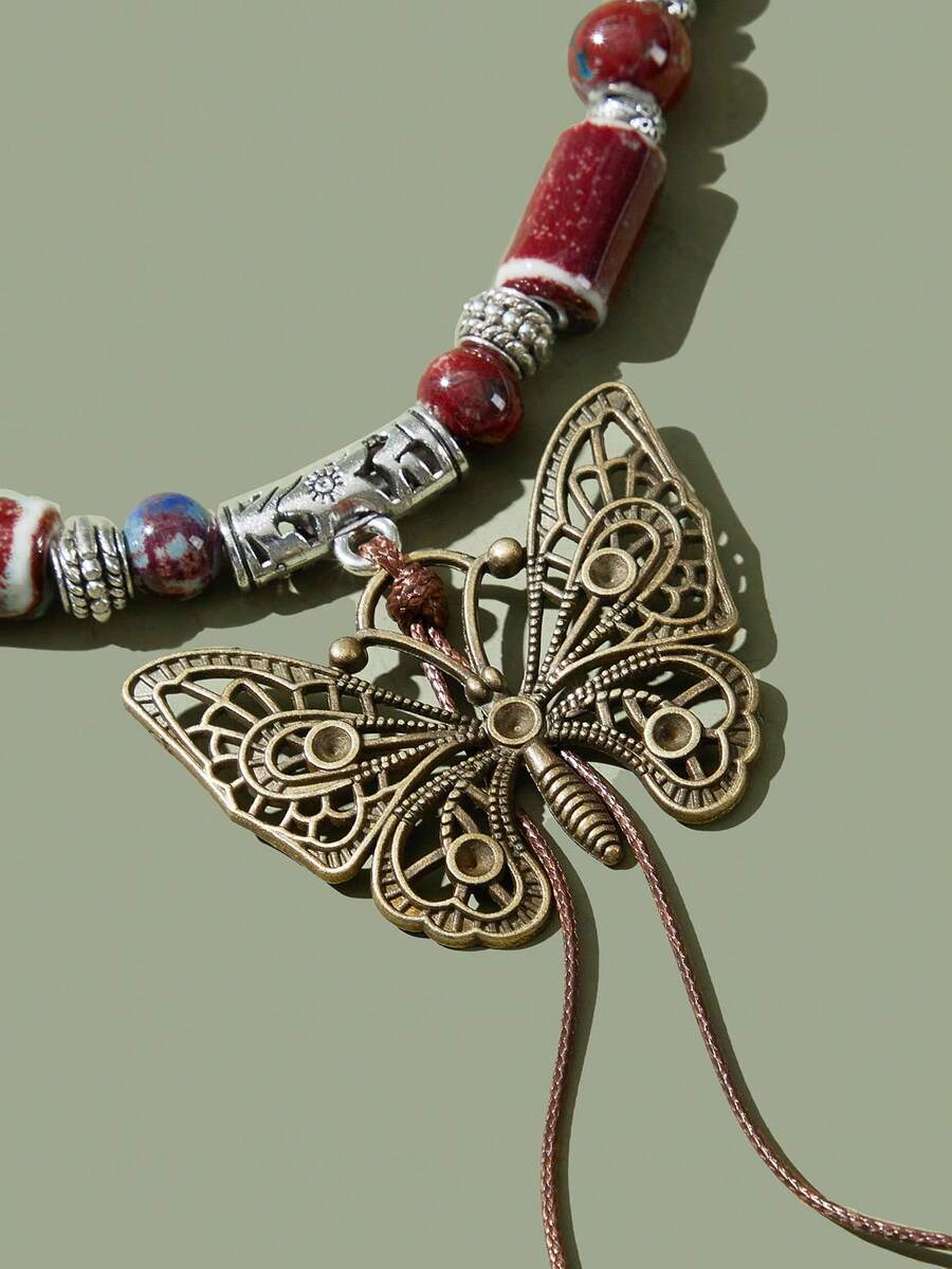 Fairycore 1pc Fashion Zinc Alloy Butterfly & Random Color Bead Pendant Necklace For Women For Daily Decoration