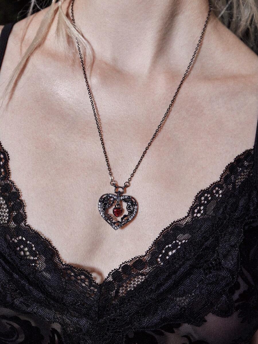 Goth 1pc Fashion Zinc Alloy Heart & Rhinestone Decor Pendant Necklace For Women For Daily Decoration