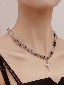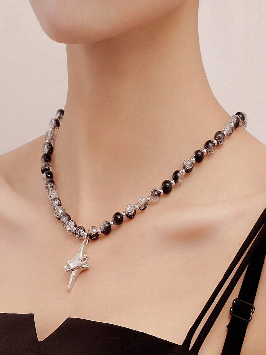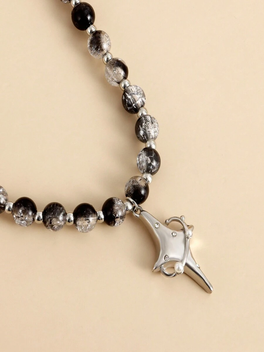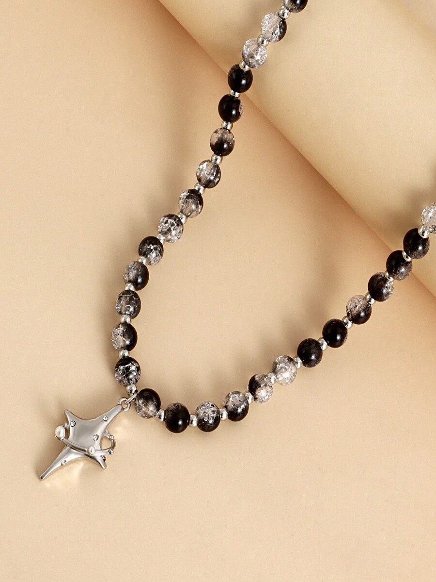 Grunge Punk 1pc Fashion Zinc Alloy Star Charm Beaded Necklace For Women For Dating Gift