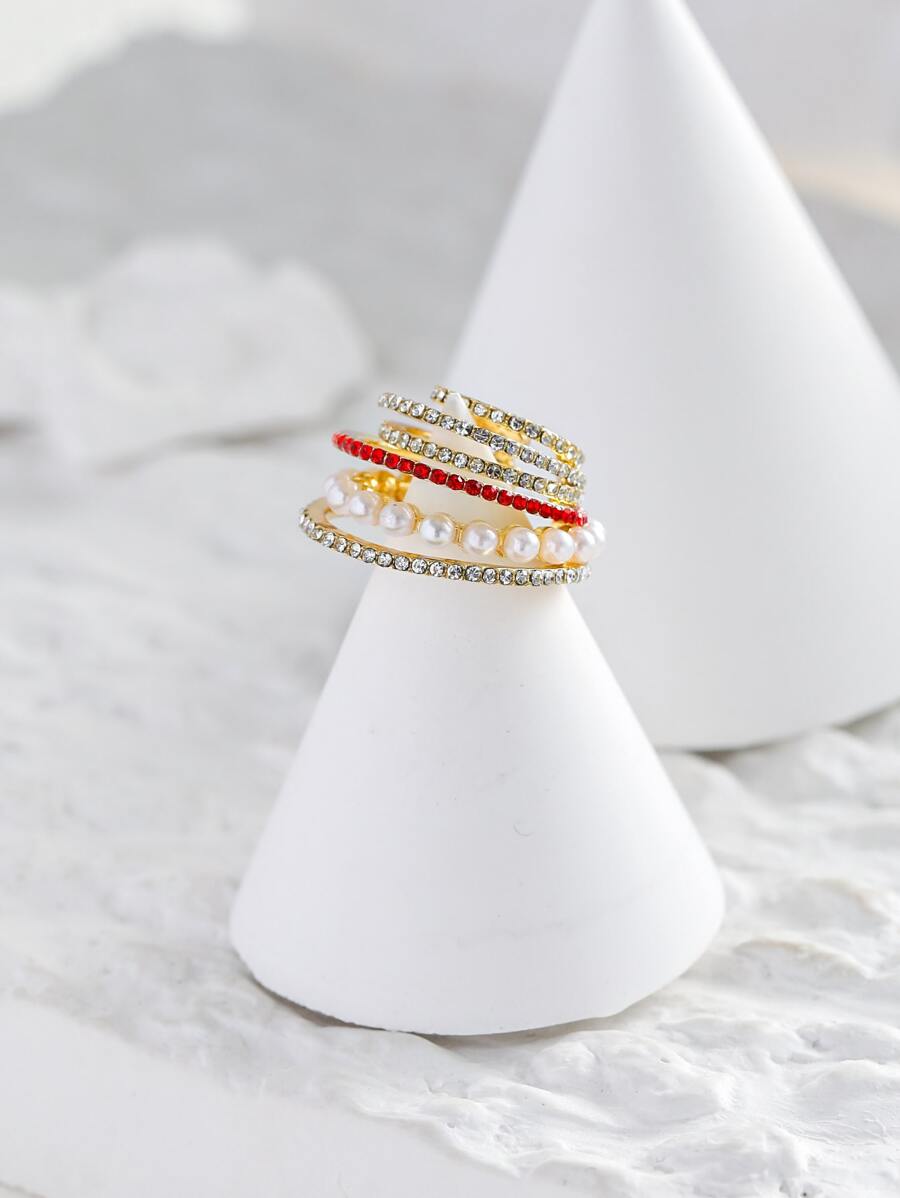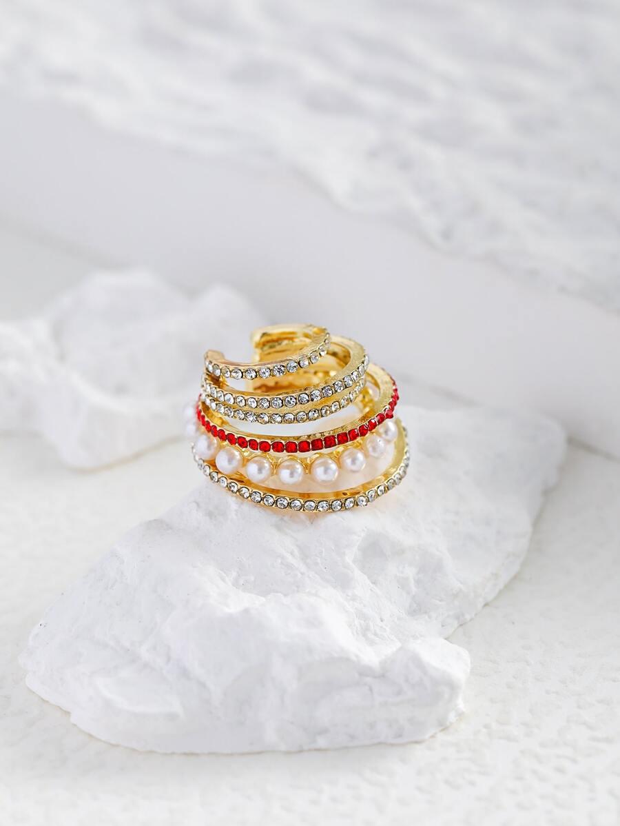 1pc Faux Pearl & Rhinestone Decor Ear Cuff
