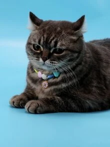 1pc Flower Pendant Beaded Pet Necklace