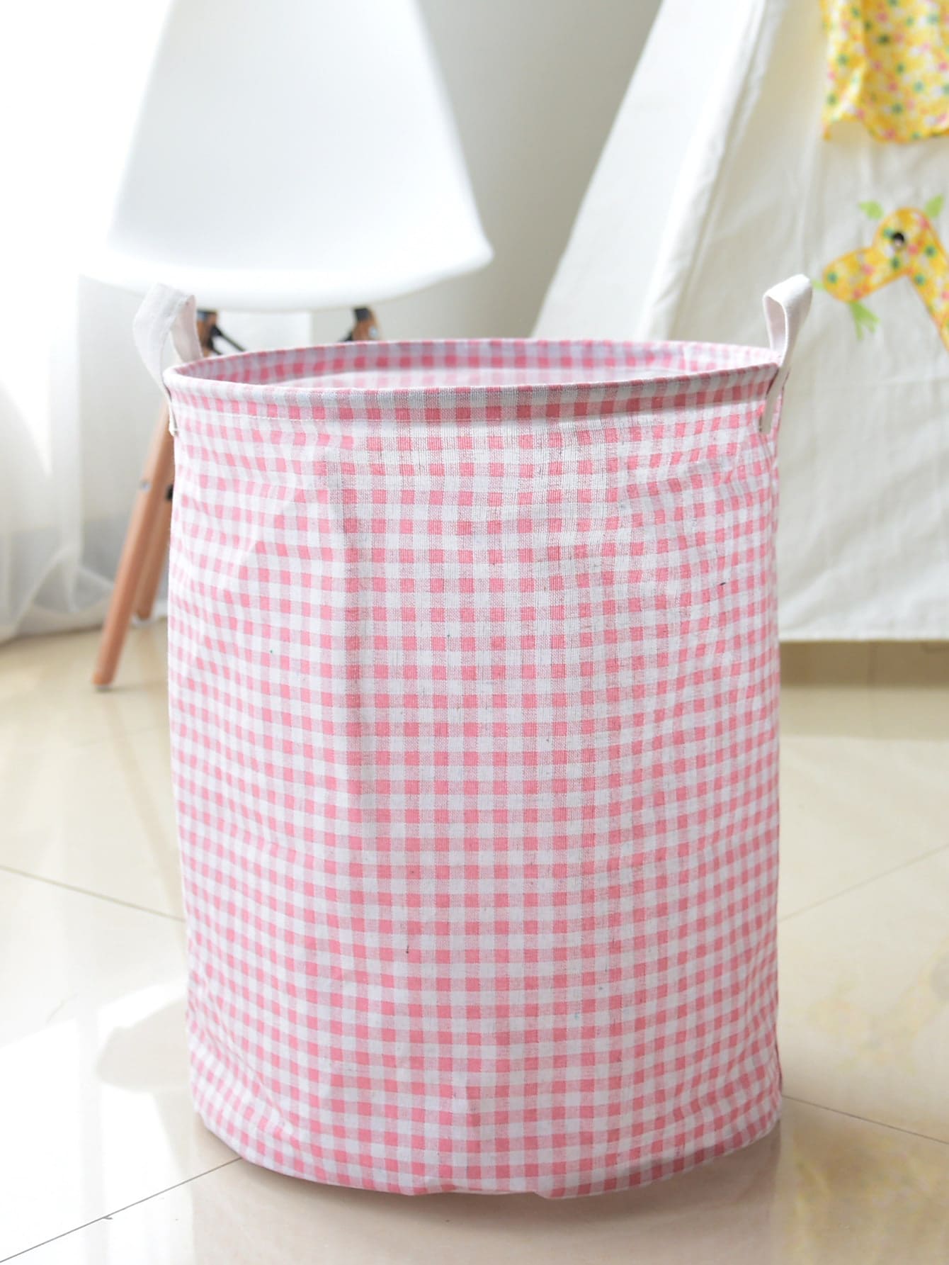 1pc Gingham Pattern Storage Basket Dress Pants Shoes Jeans Boots Skirt Laundry Hamper, Washing Basket Bathroom Organizer, Basket, Storage Basket, Foldable Laundry Basket