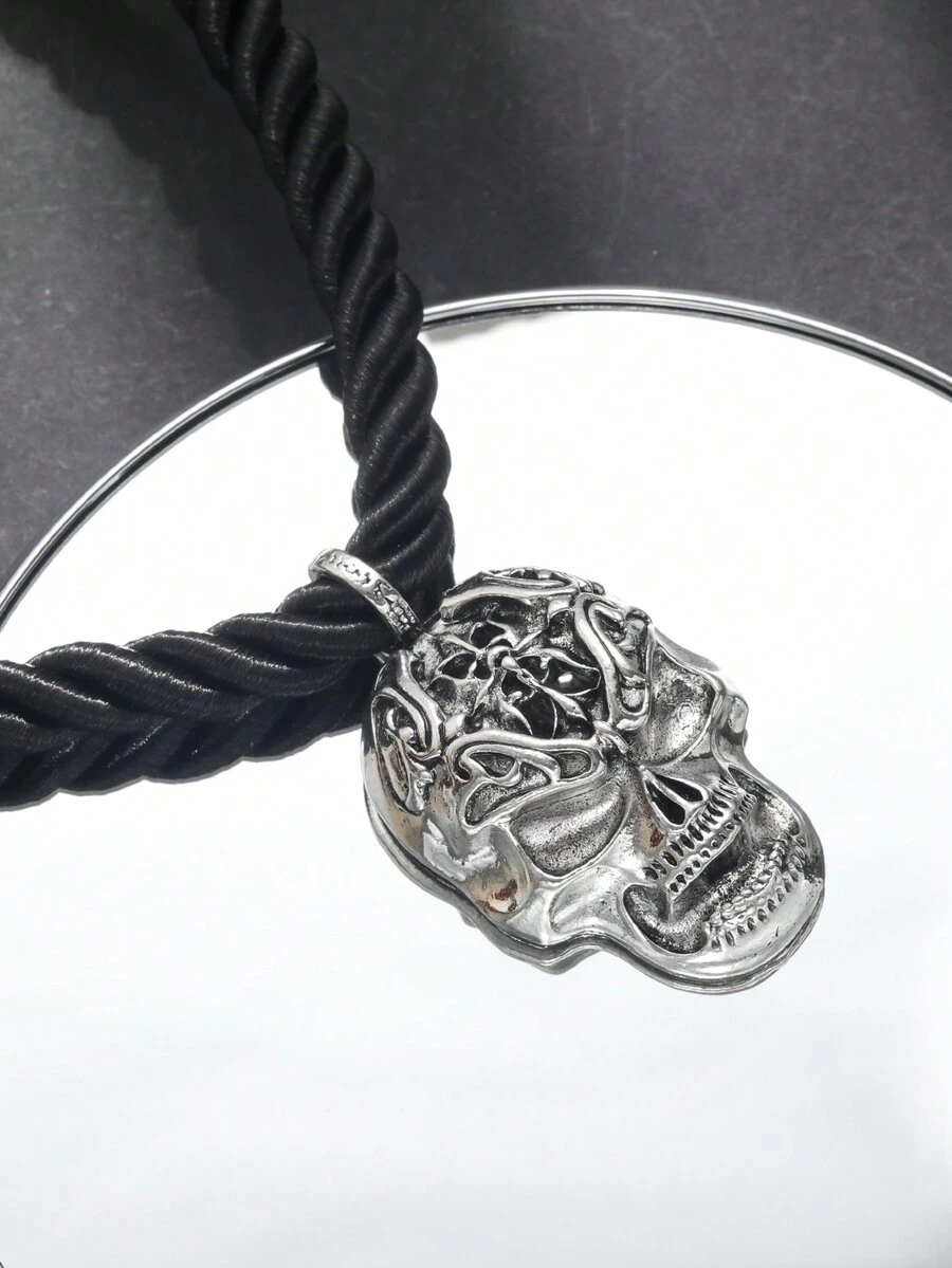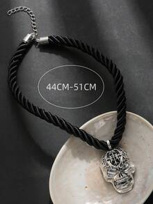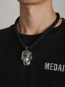 1pc Gothic Style Black Skull & Thick Rope Pendant Necklace For Men
