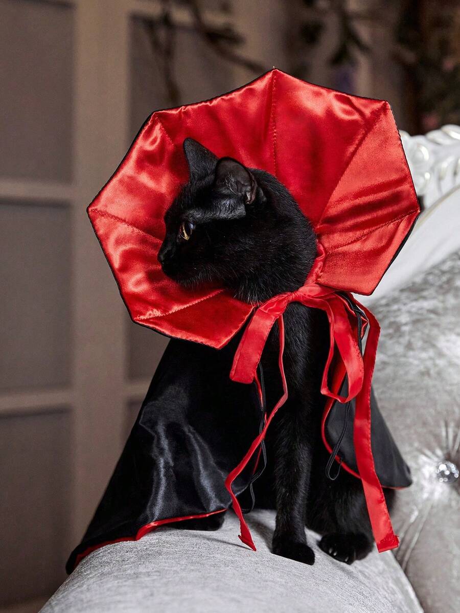 1pc Gothic Style Red & Black Contrast Pet Vampire Cape Costume Halloween Halloween Costumes
