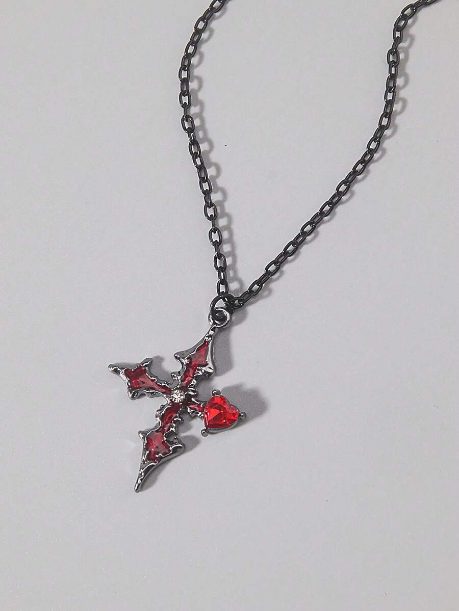 Goth 1pc Gothic Vintage Dark Cross Rhinestone Necklace, Holiday Party Gift