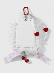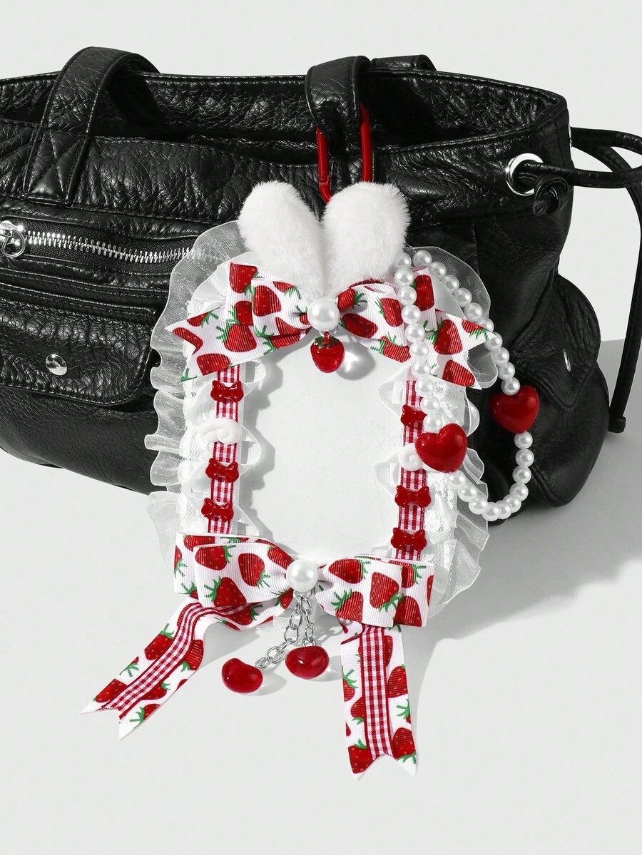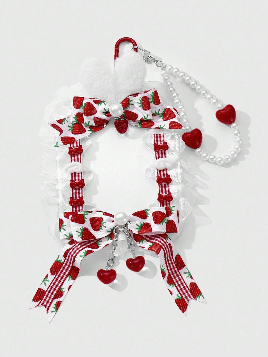 Kawaii 1pc Ins Style Cute & Versatile High-Quality Handmade Beaded White Faux Pearl Glitter Resin Heart, Plush Rabbit Ear, Printed Ribbon, Resin Strawberry, Butterfly Wing, Lace Trim, Acrylic ID Card Holder, Keychain & Bag Charm, Suitable For Office Workers, Students, Daily Wear, Holiday Gift