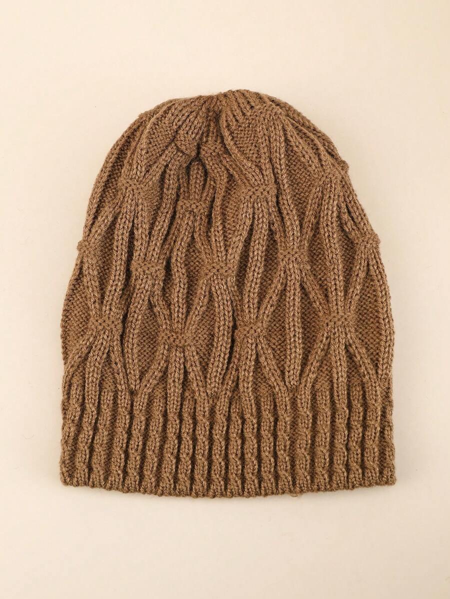 1pc Ladies' Khaki Single-layer Knit Beanie Hat With Twisted Pattern, Warm And Fashionable