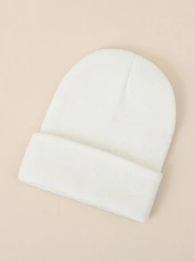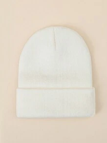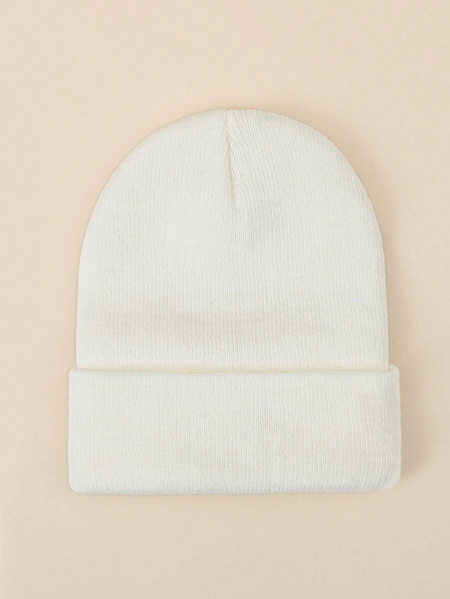 1pc Ladies' White Solid Color Knitted Beanie Hat, Suitable For Daily Wear