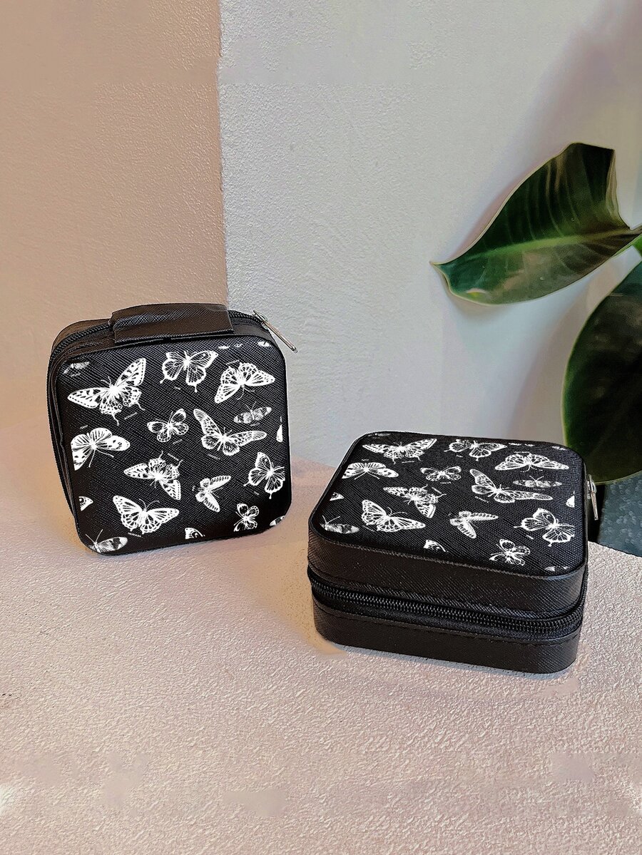 1pc Letter & Butterfly Print Jewelry Box, Cartoon Square Shaped Jewelry Storage Box For Travel, Home