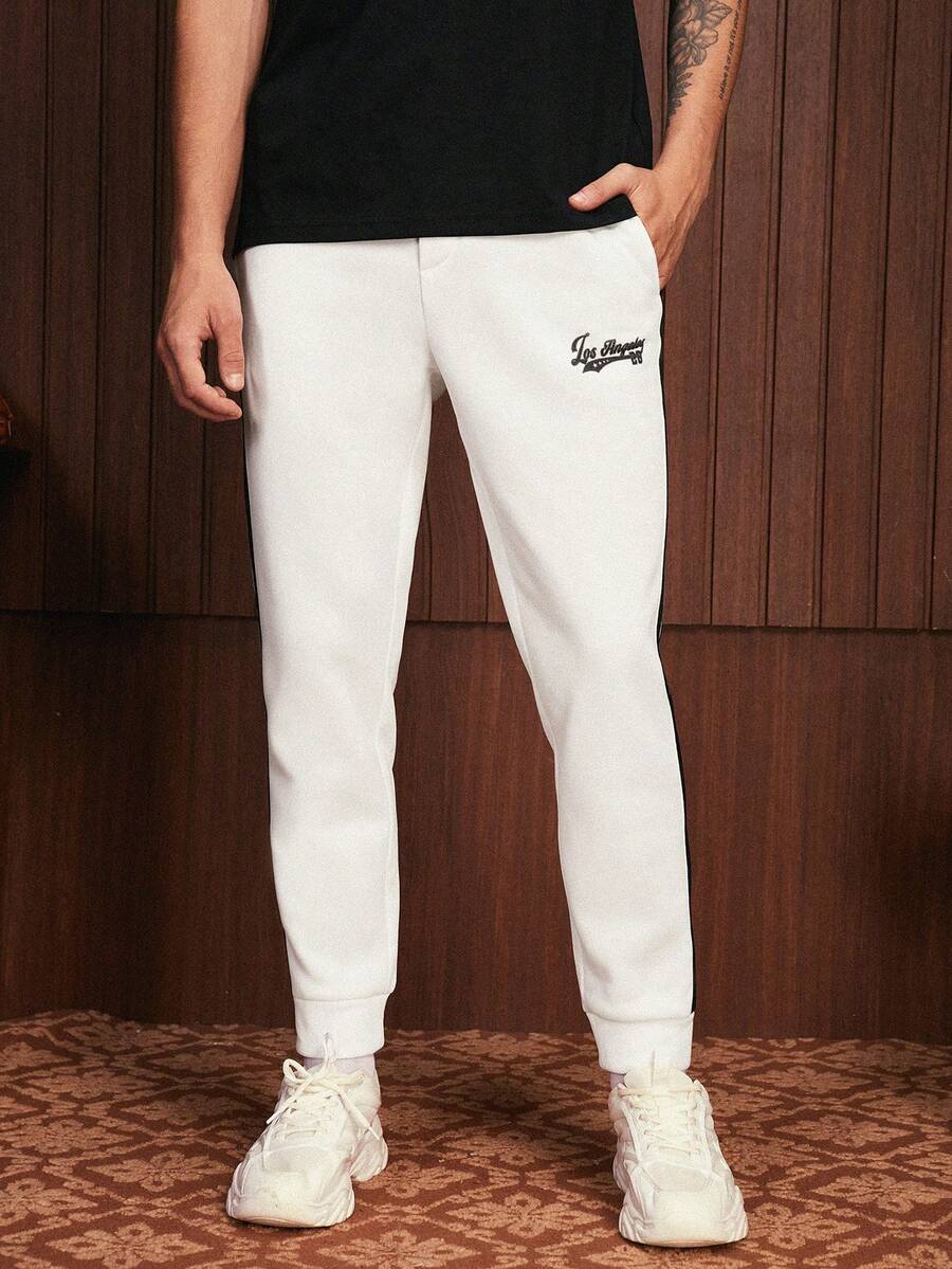 1pc Letter Graphic Contrast Tape Side Drawstring Waist Sweatpants