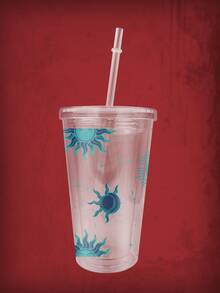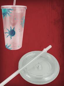 1pc Moon & Sun Print Tumbler, Modern PS Galaxy Print Bottle With Lid For School, Office