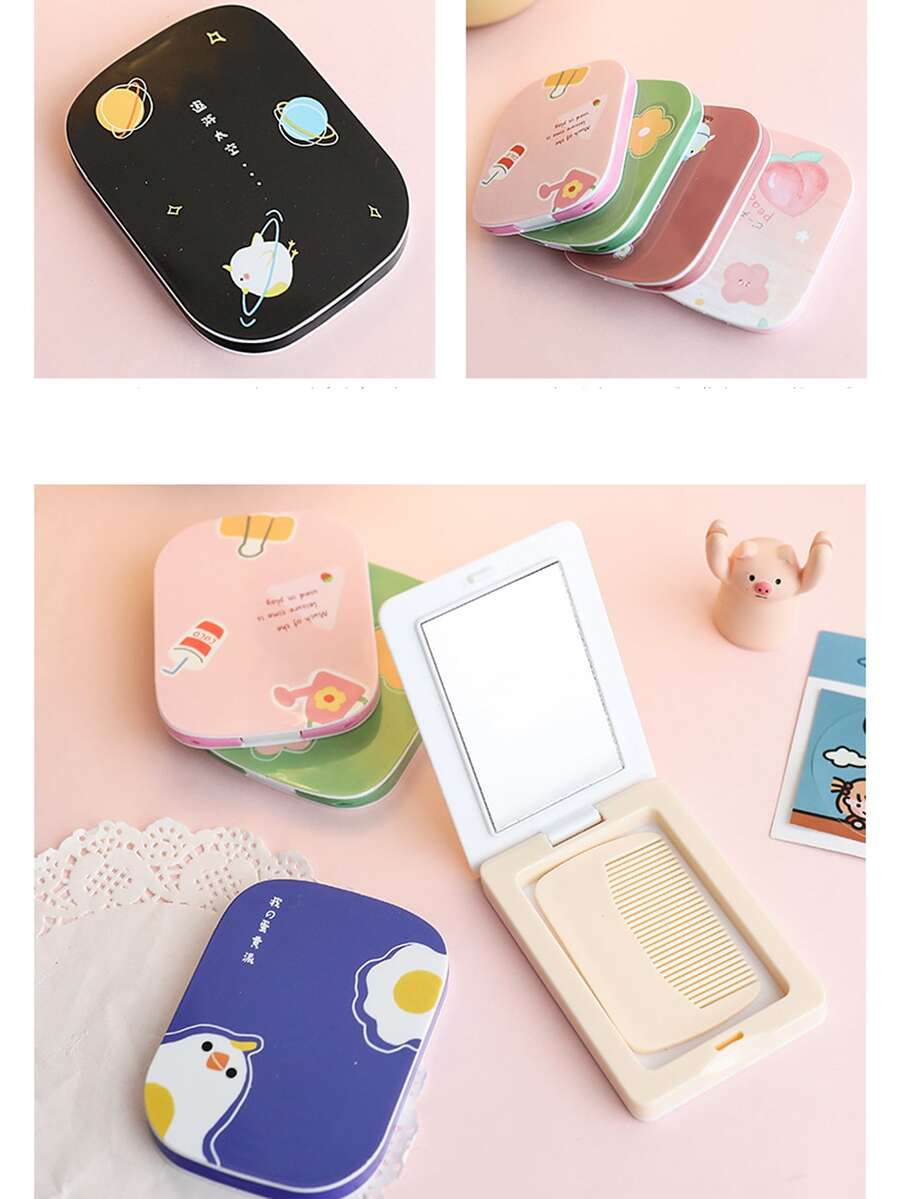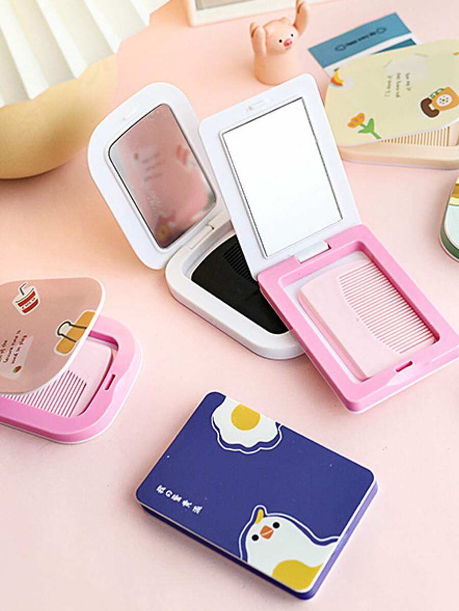 1pc Random Cartoon Mirror With Hair Comb