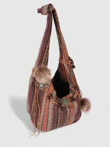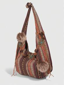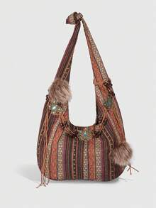 Fairycore 1pc Retro Patterned Shoulder Bag, A Nepalese Cloth Bag, A Striped Large Capacity Canvas Bag, A Butterfly Tassel Decorated Shoulder Bag, Multi-Purpose Crossbody Bag