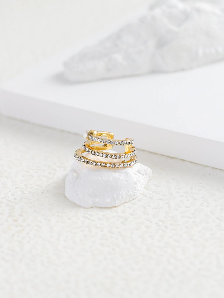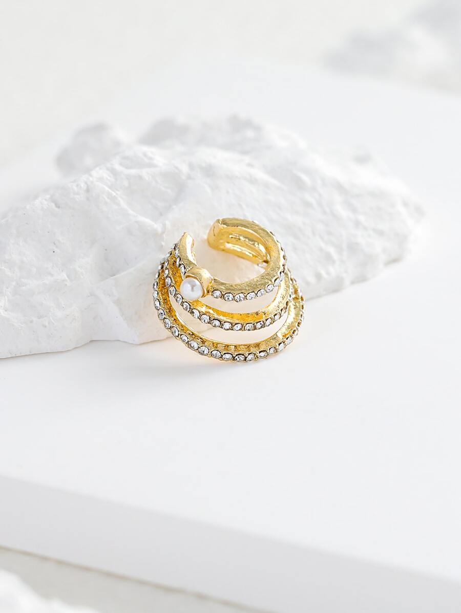 1pc Rhinestone & Faux Pearl Decor Ear Cuff
