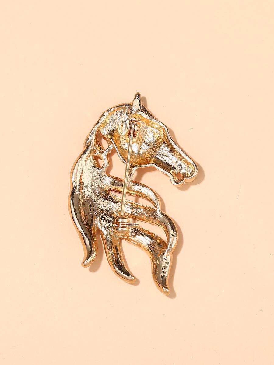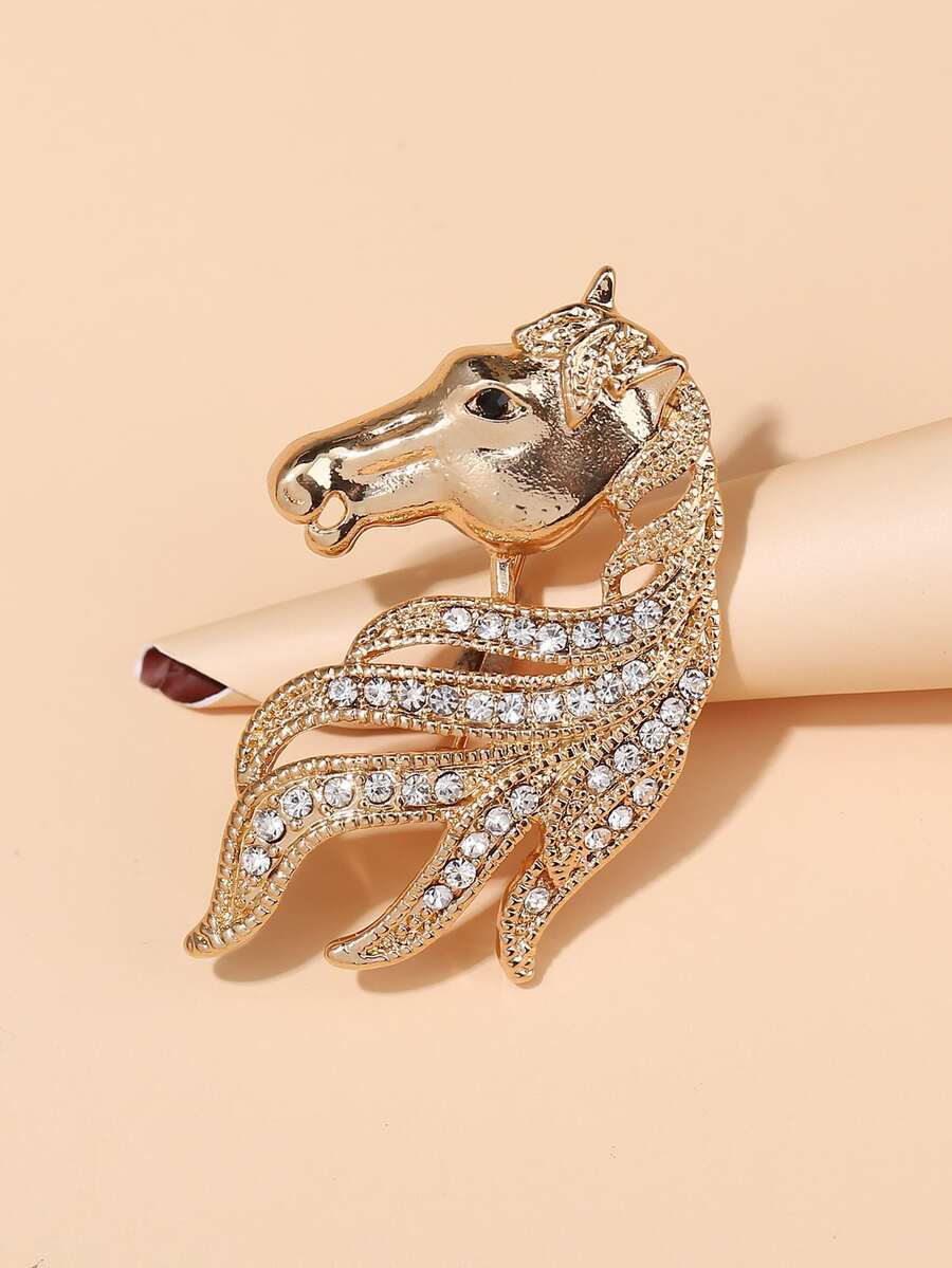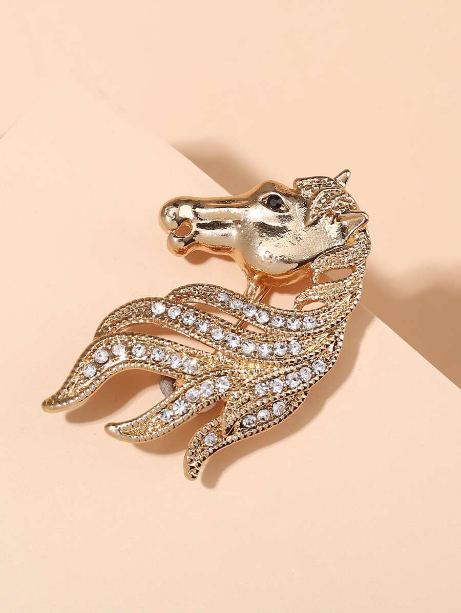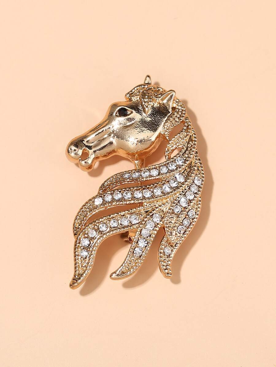1pc Rhinestone Decor Horse Head Shaped Brooch