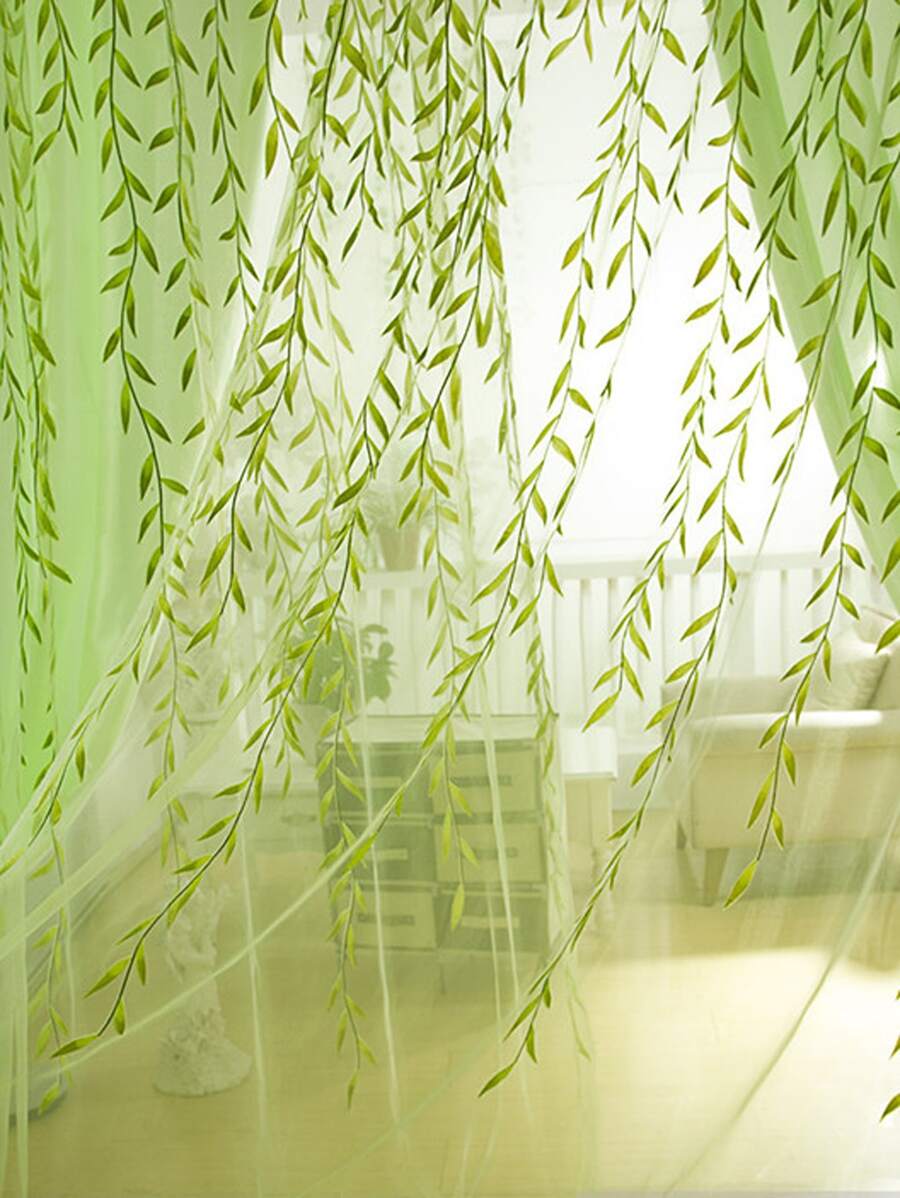 1pc Simple Weeping Willow Printed Window Curtain