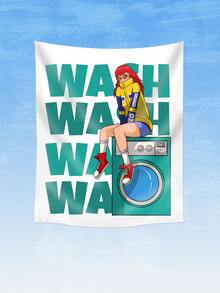 Lasthopeparty 1pc Slogan & Figure Graphic Tapestry, Cartoon Fabric Letter Graphic Hanging Blanket For Home