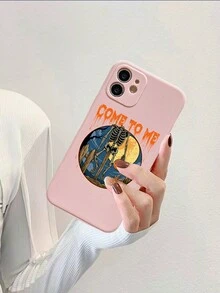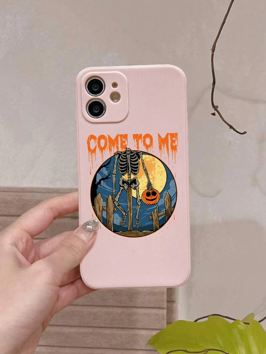 JRart 1pc Slogan Halloween Cartoon Graphic Silicone Phone Case Compatible With IPhone