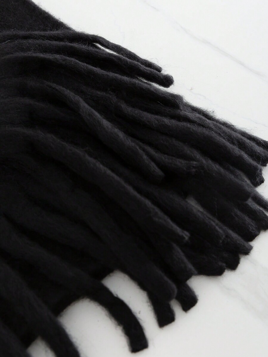 1pc Solid Color Scarf, Women's Winter Scarf, Daily Neck Warmer, Thick Knitted Fringed Shawl