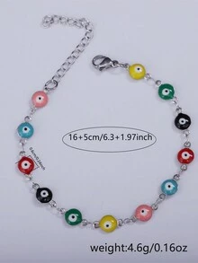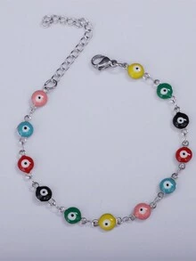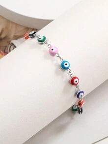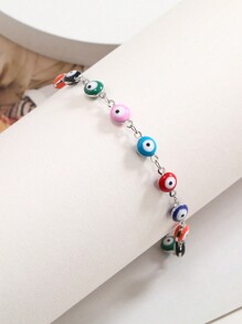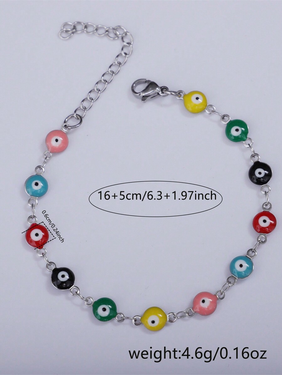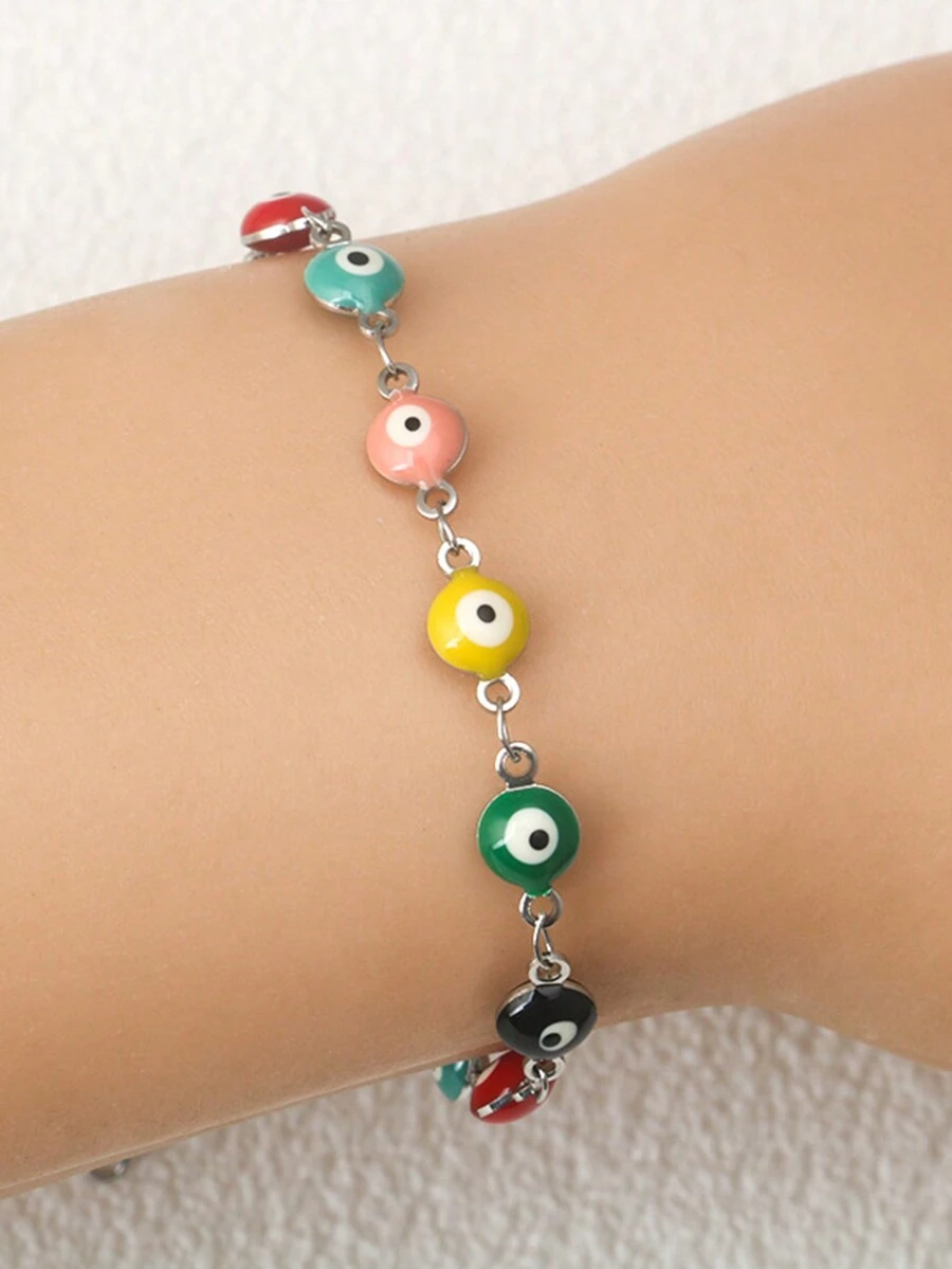 1pc Stainless Steel Colorful Evil Eye Decor Bracelet For Women (eye Color Random)