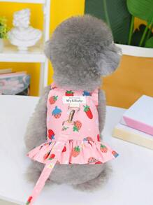 1pc Strawberry Print Pet Leash & 1pc Dress Design Pet Harness