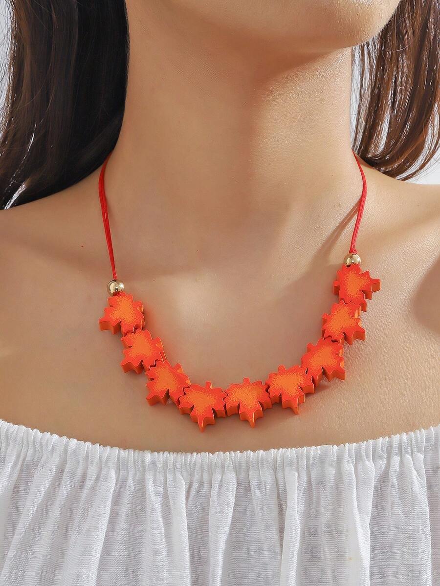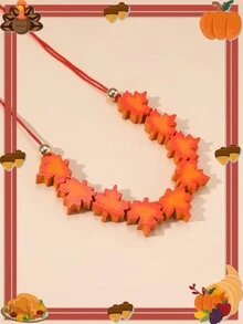 1pc Thanksgiving Day Fashionable Vintage Maple Leaf Shaped Wooden Beaded Necklace
