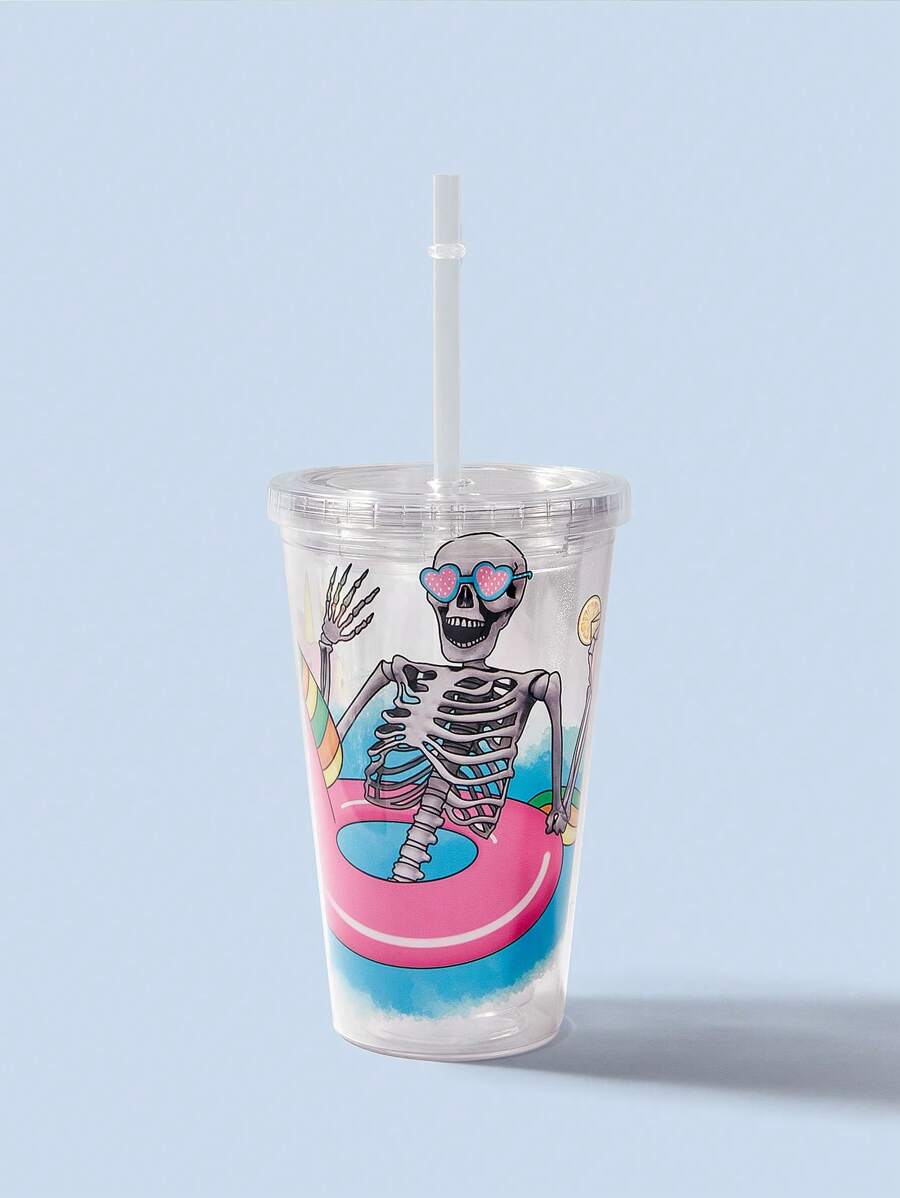 Butterfly Barn Co 1pc Tumbler,Casual Skeleton Graphic Bottle With Lid