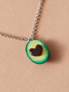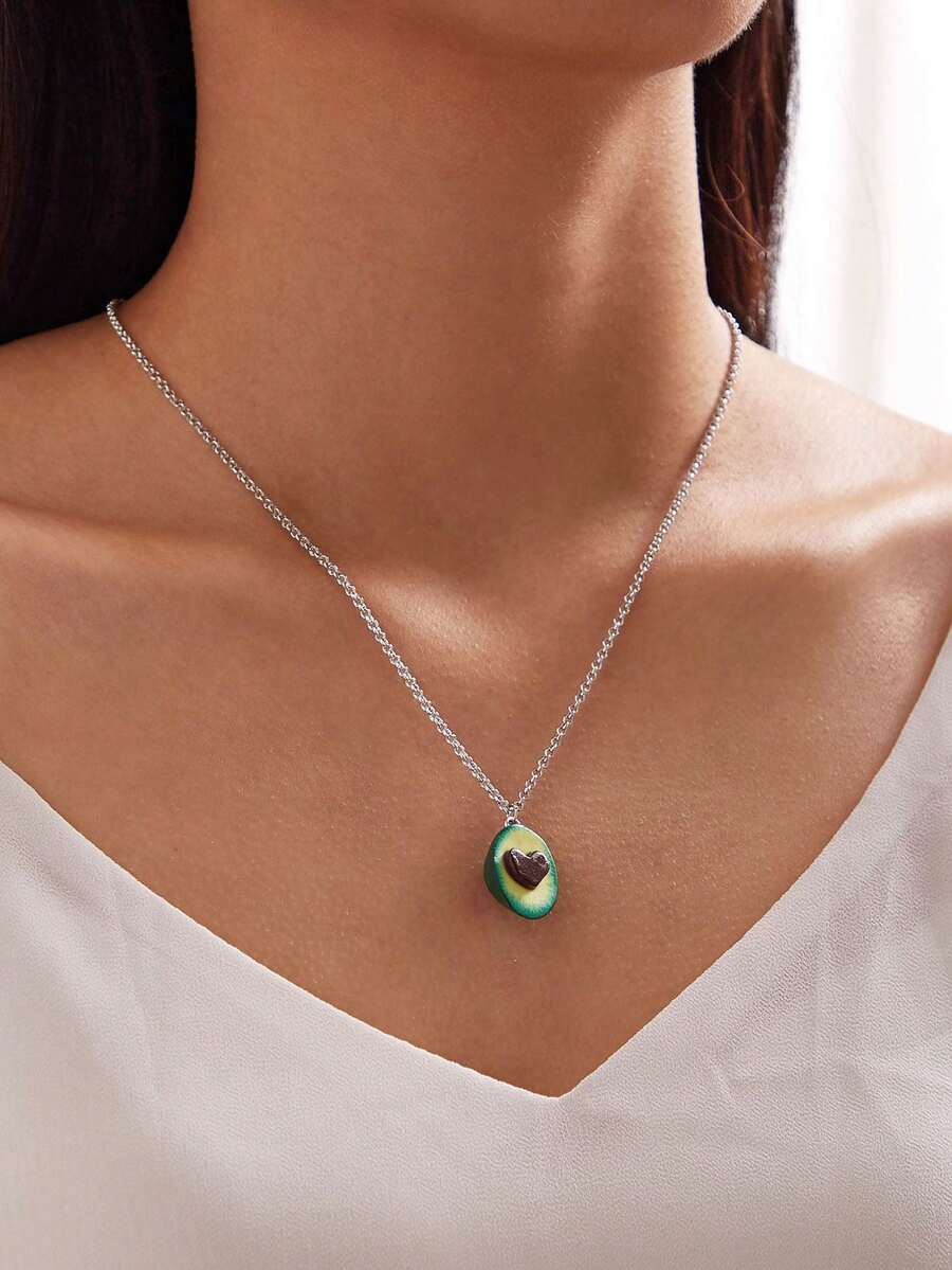 1pc Versatile Zinc Alloy Heart & Half 3d Avocado Pendant Necklace For Women, Dating Gift