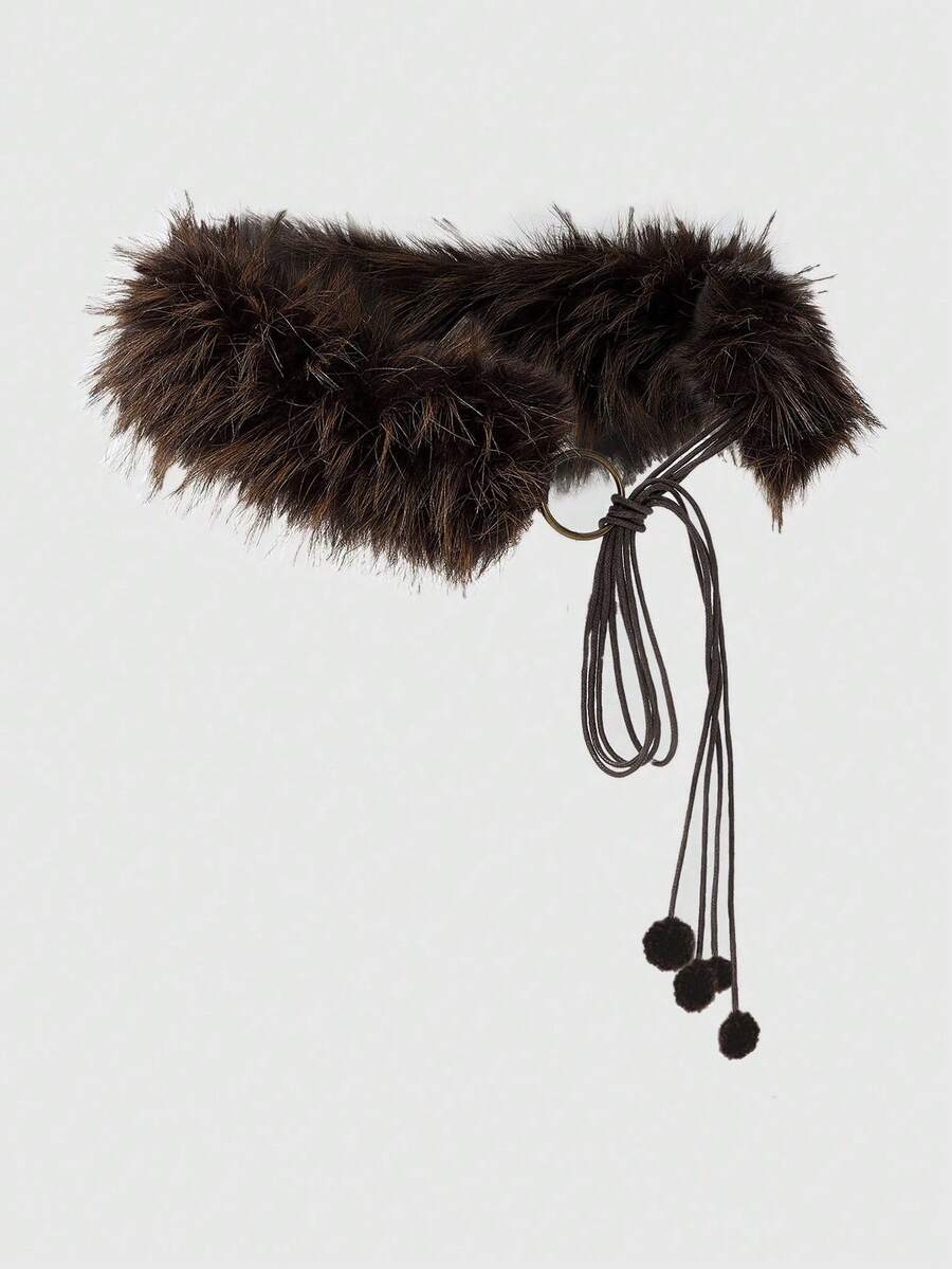 J-Fashion 1pc Women's Leopard Print Fuzzy Decor Western Boho Fringe Waist Tie Dress/Jeans Accessory, Versatile For Daily Wear