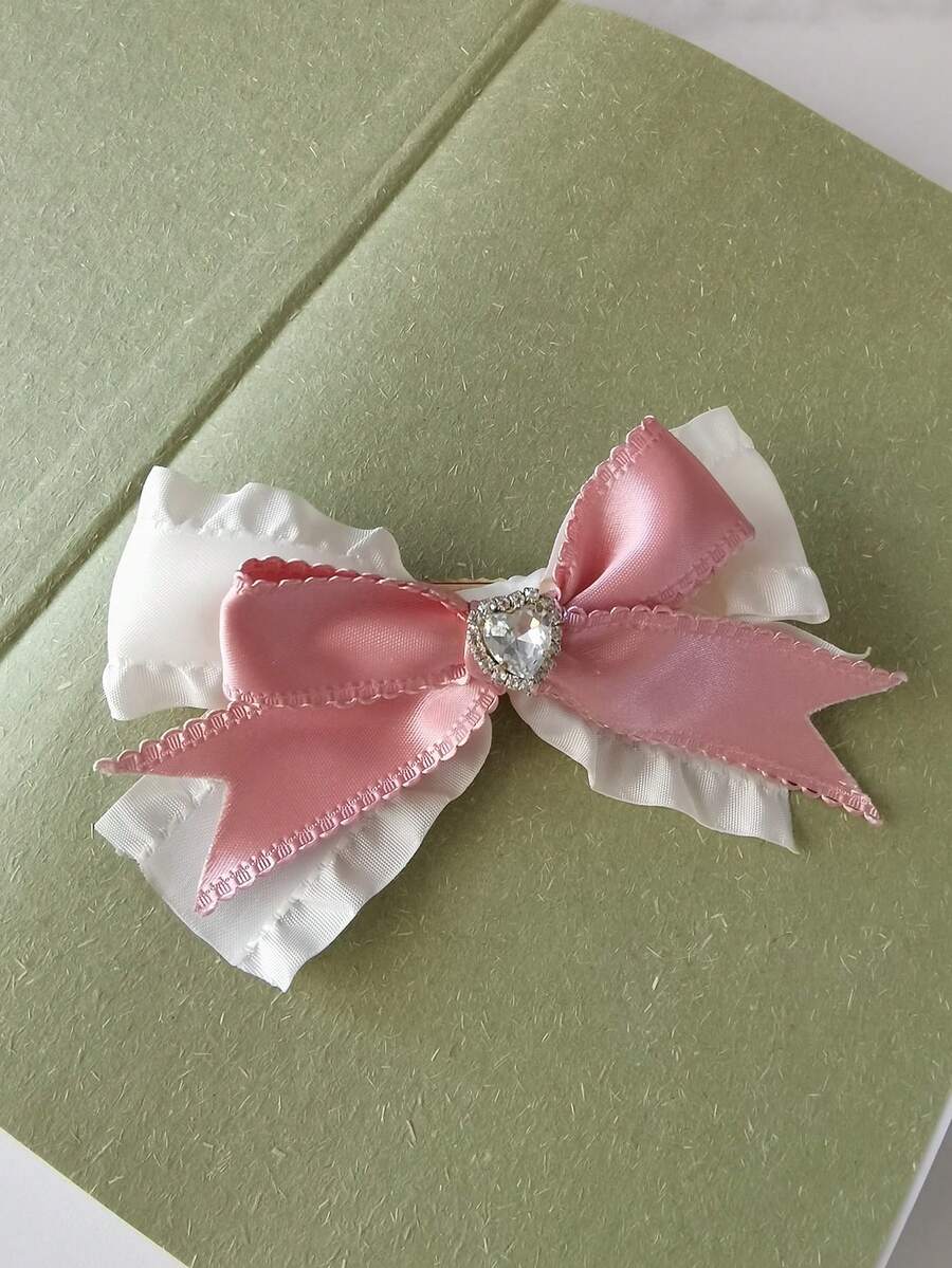 Goth 1pc Women Bow & Rhinestone Heart Decor Hair Clip