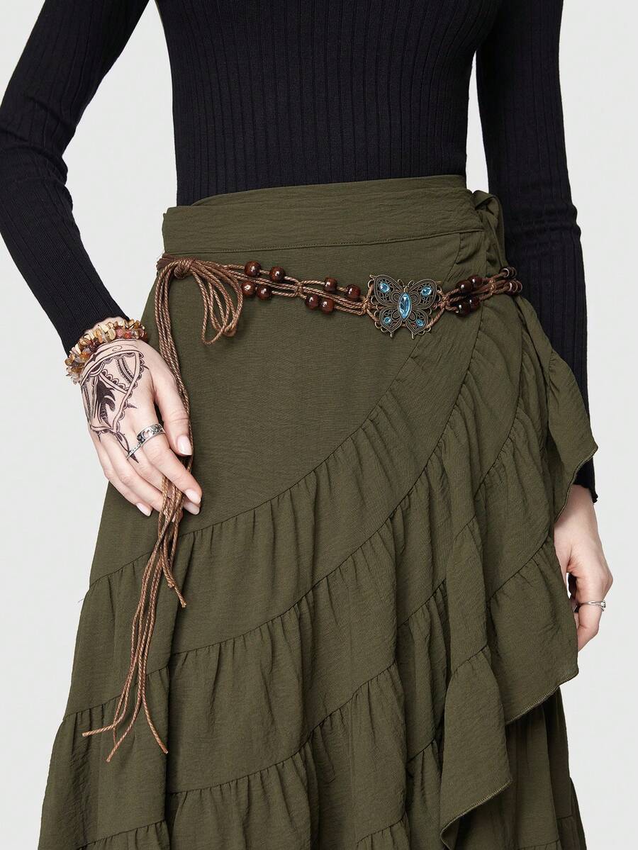 Fairycore 1pc Women Butterfly & Bead Decor Rope Belt