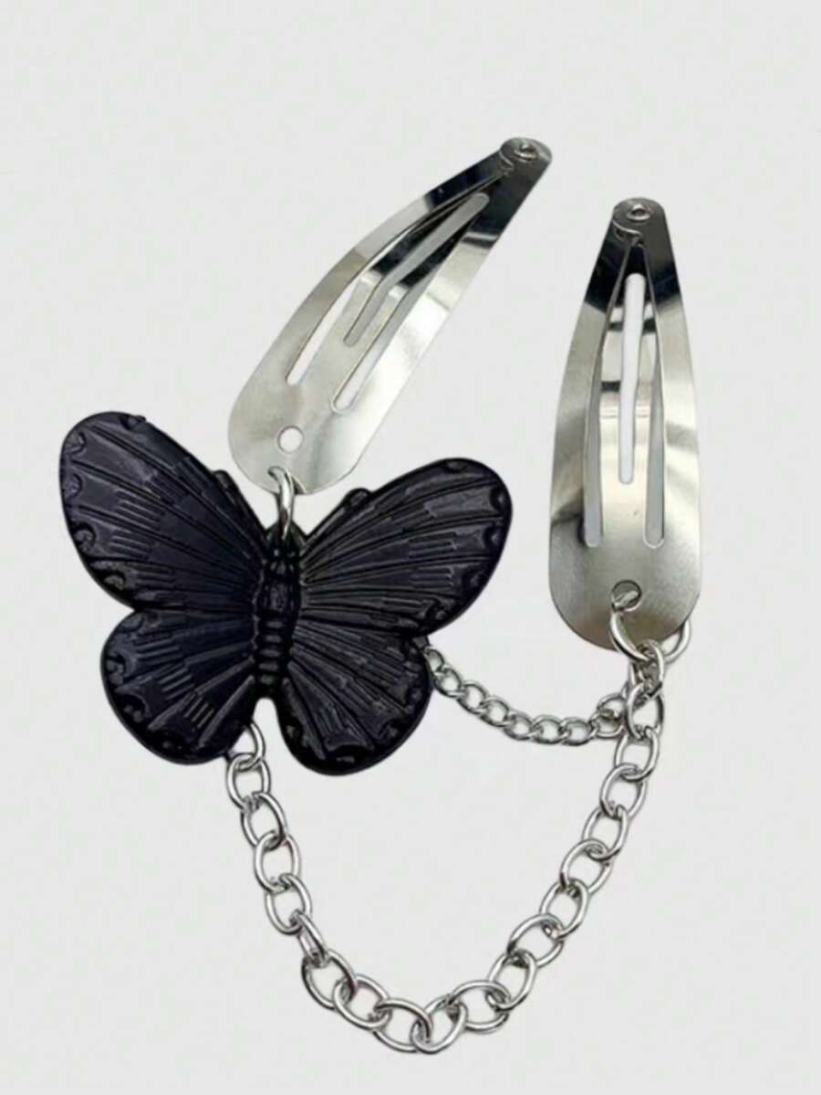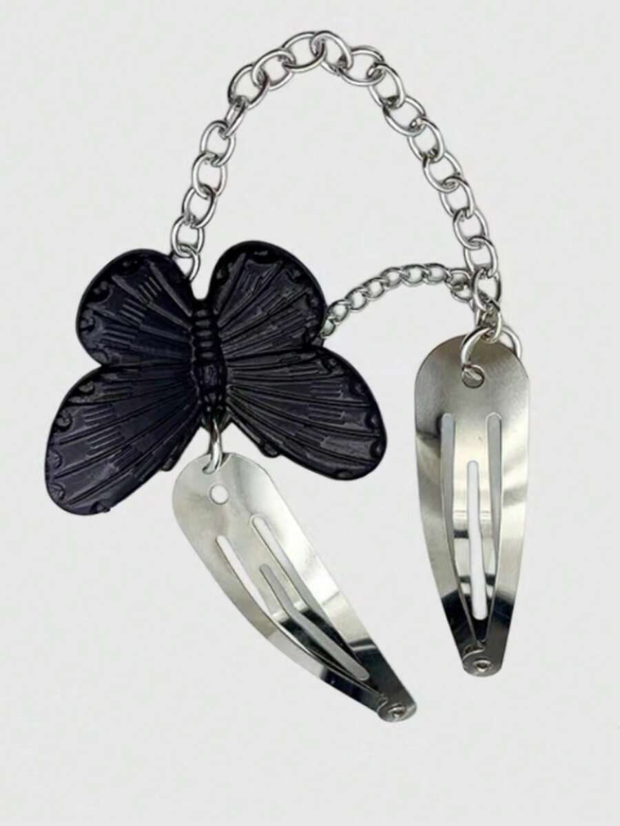 Goth 1pc Women Butterfly & Chain Decor Hair Clip
