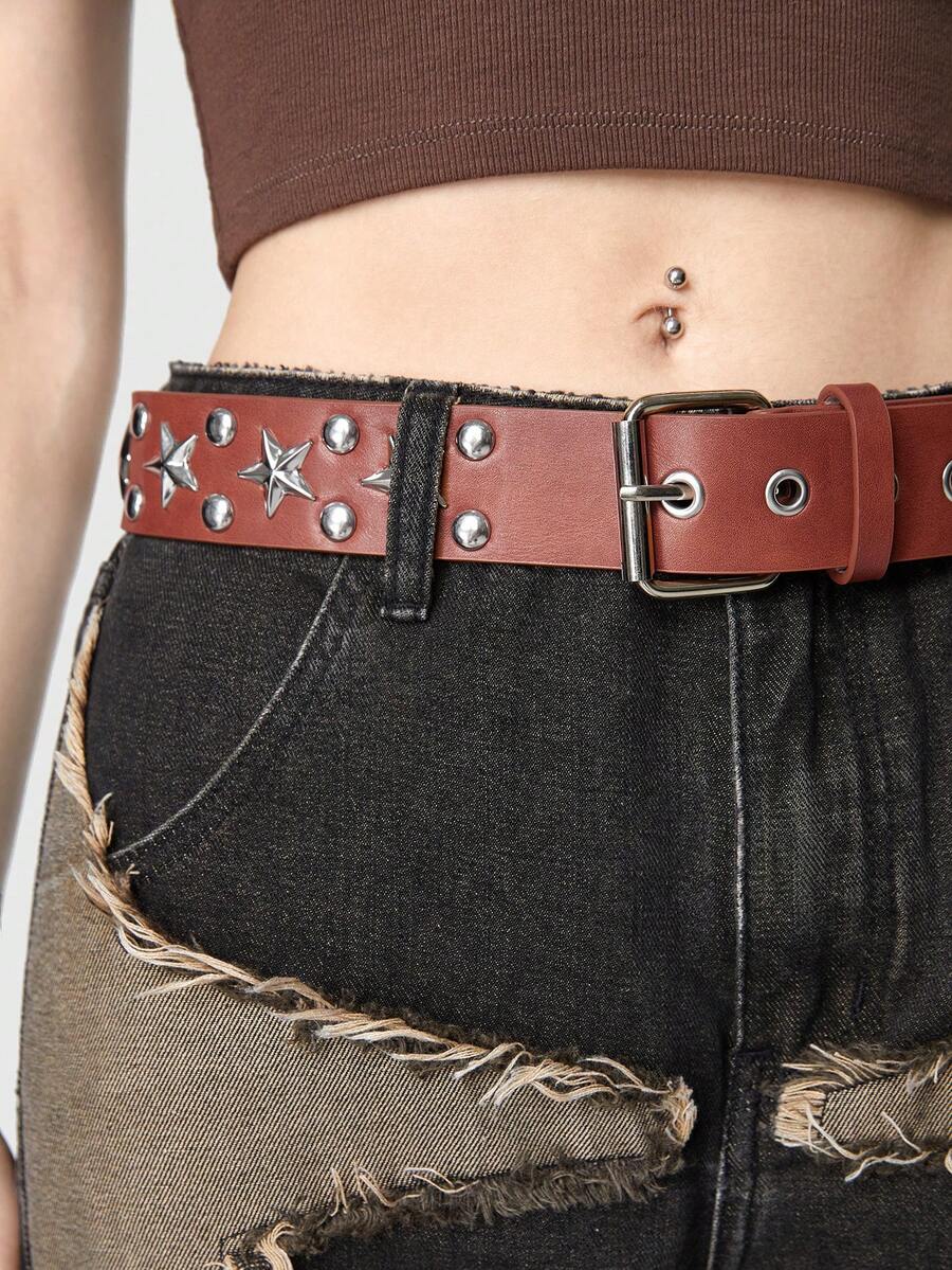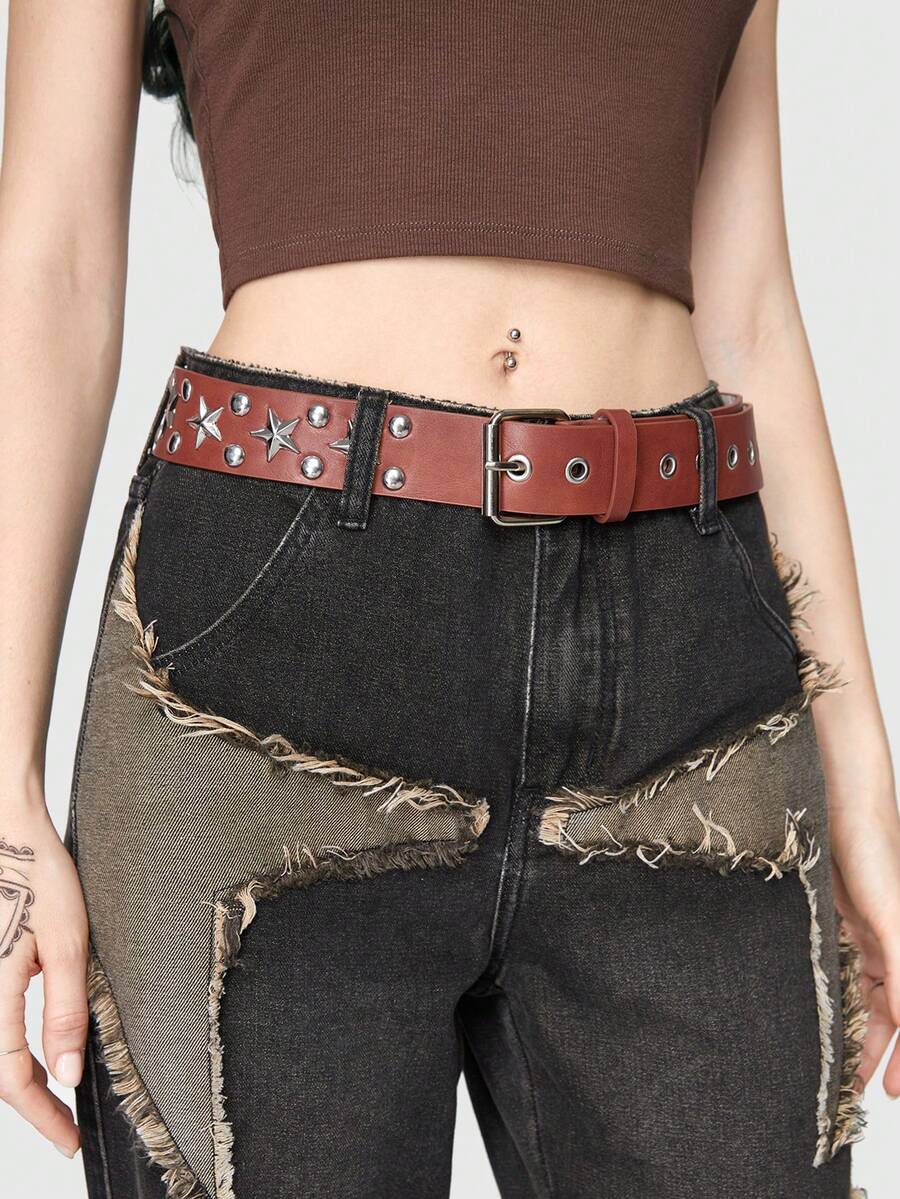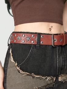 Fairycore 1pc Women Star & Studded Decor Square Buckle Belt