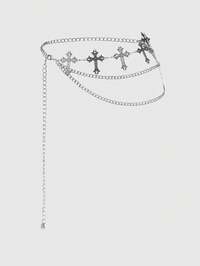 1pc Women Gothic Cross Design 3-Layer Chain Belt, Silver & Black Versatile Dress Accessory, Halloween