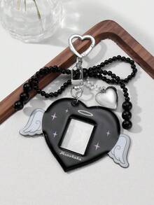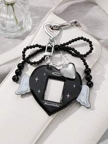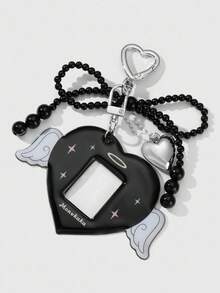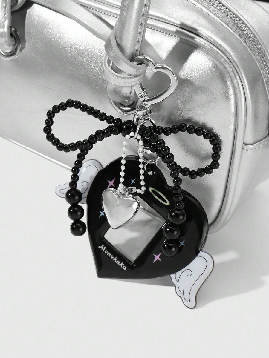 Anime 1pc Y2K Style Vintage Gothic Handmade Beaded Black Round Bead Bow, CCB Wing Heart ID Card Holder, DIY Keychain Bag Charm, Suitable For Women, Daily Wear, Holiday Gift