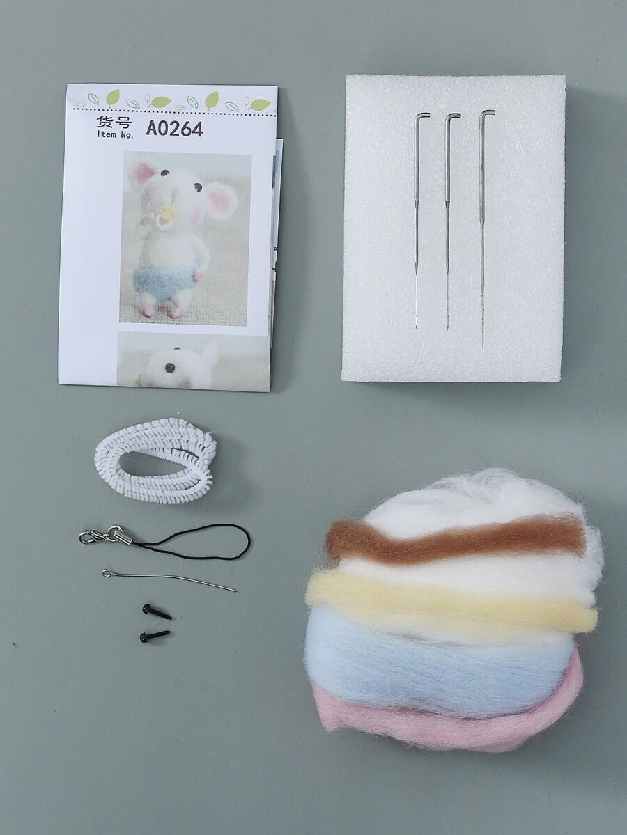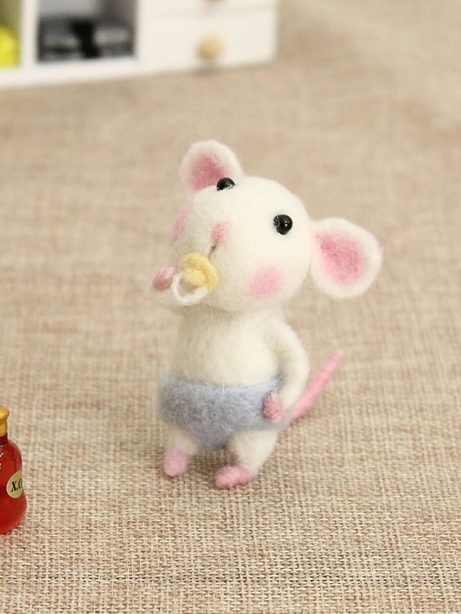 1set Mouse Shaped Wool Felt Poke Material Kit