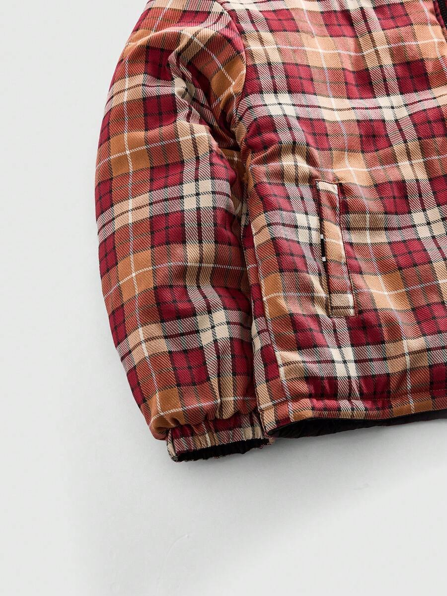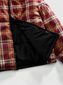 2-Way Wear Red & White Plaid Men's Casual Zip-Up Long Sleeve Jacket, Winter