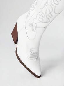 Fairycore 2025 Autumn/Winter New Pointed Toe Chunky Heel Embroidery Western Boots, Outdoor Fashion Leather Over-The-Knee Boots