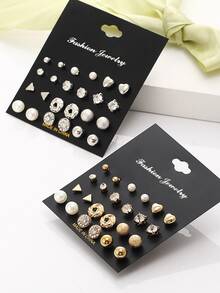 24pairs Fashion Rhinestone & Faux Pearls Decor Stud Earrings For Women For Daily Decoration