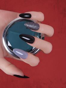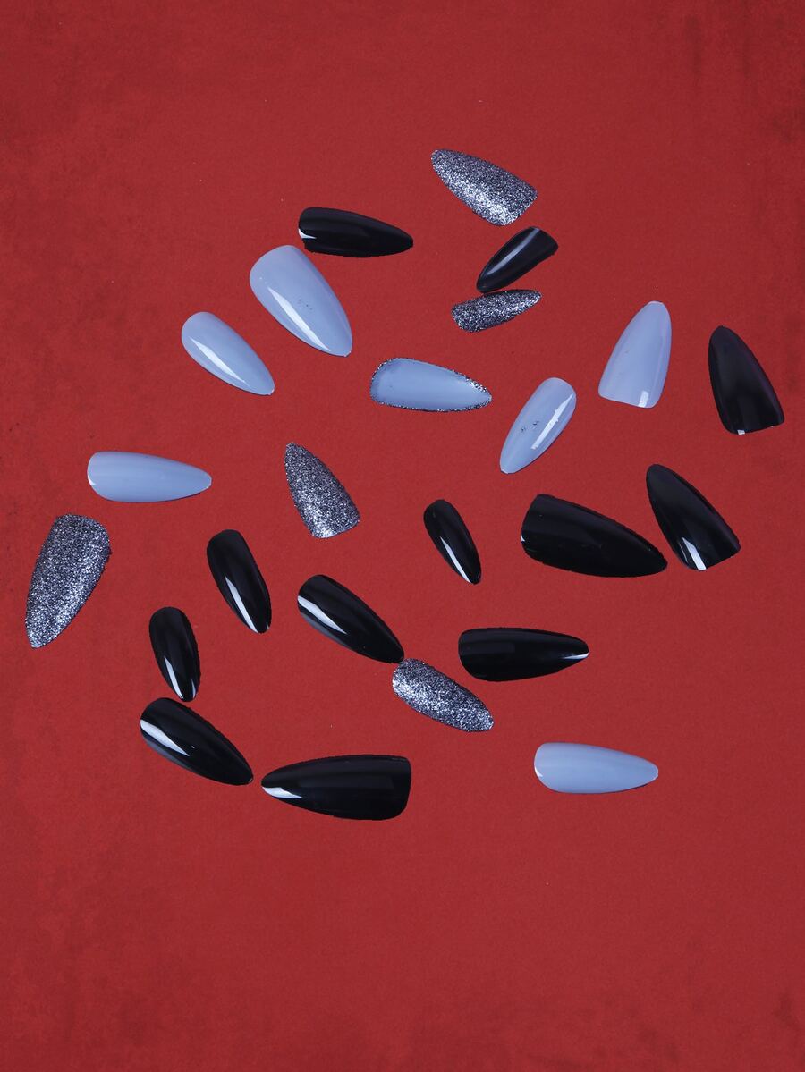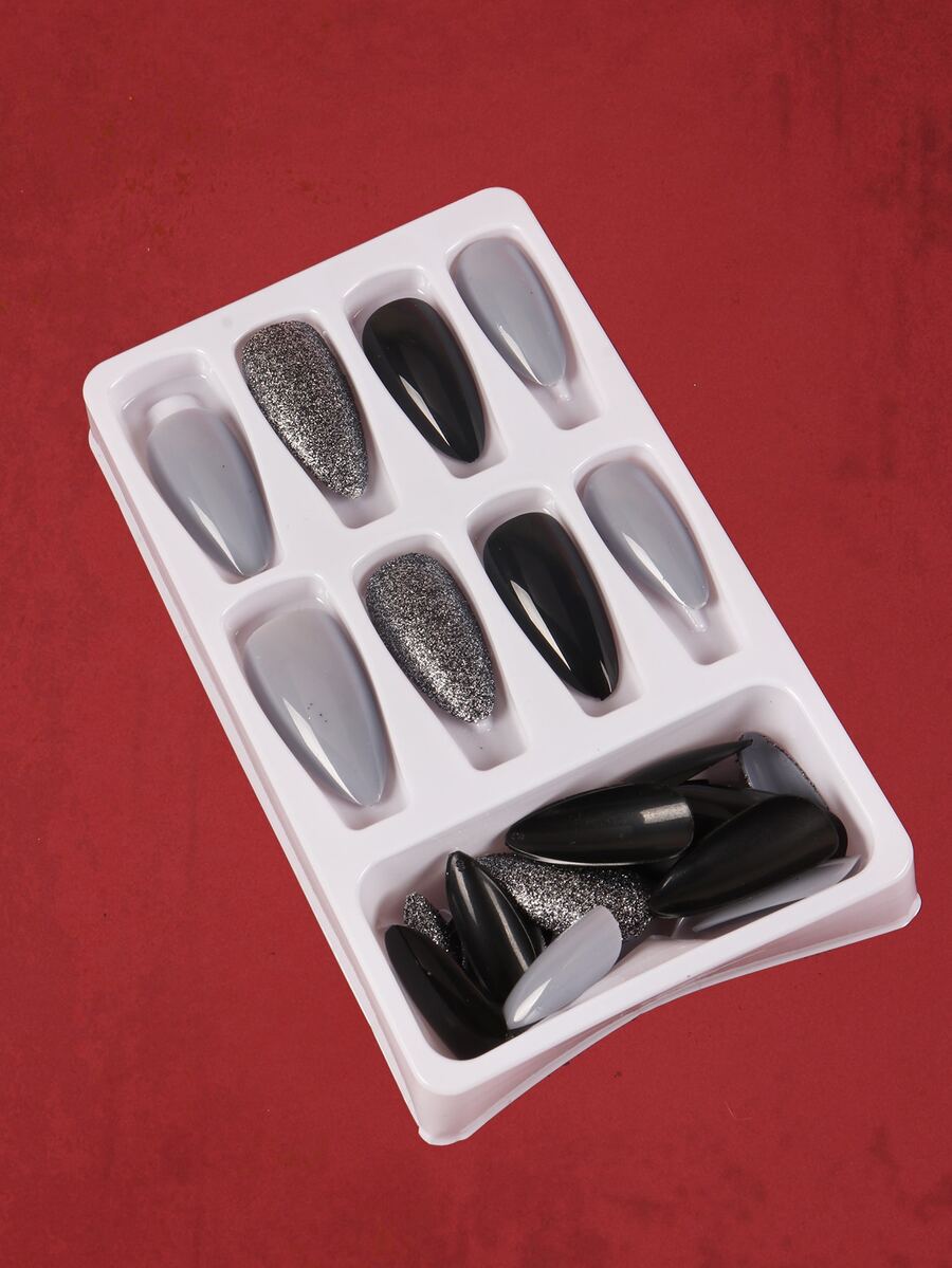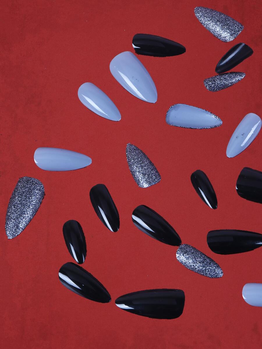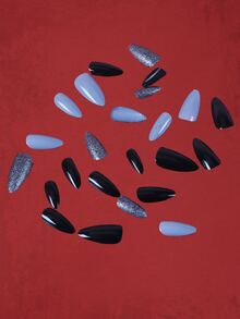 24pcs Almond Glitter Fake Nail & 1sheet Tape