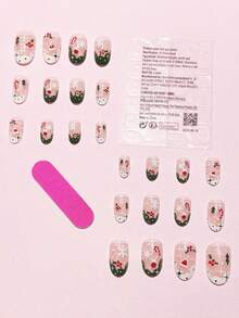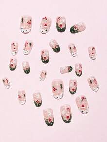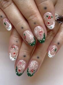 24pcs Almond-shaped Christmas Gift Nail Tips In Red & Green With Jelly Glue